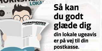 Erhvervsmæssig affotografering skal godkendes med skriftlig tilladelse fra Hornsherred Lokalavis. Ansvar over for loven om forfatter- og kunstnerret påhviler alene annoncøren. Nærmere forretningsbetingelser kan ses på: www.hornsherredlokalavis. dk/forretningsbetingelser