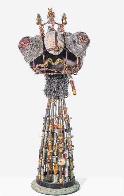 KIRKE HYLLINGE: Irene Rosenkrantz er multikunstner og arbejder med skulpturer, relieffer og smykker, alt i genbrugsmaterialer. Ofte skrot metal kombineret med bronzestøbte dyrekranier .alt kan bruges i skøn forening/forvirring.