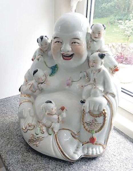 Hej LKL – tak for dine spørgsmål. Din Buddah er ganske rigtigt fra den Kinesiske republik under Mao i 1960 erne, den er ikke en Buddah, men en Budai (kinesisk munk) omgivet af børn. Den blev brugt på hjemmealteret, for at