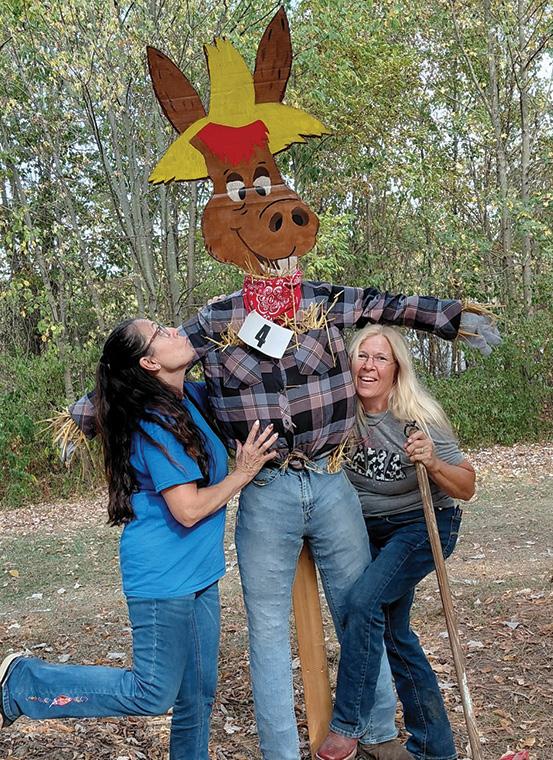 weekend, not to mention all the delicious food that was prepared and available for devouring! If you’ve never taken the time to attend your local State Ride, you are definitely missing out. And if you are not yet involved and contributing to your local chapter, make plans to do so now! Whether you are an artist, self-proclaimed chef, good at cleaning, work with kids, or whatever, there’s sure to be a need that you can contribute to or help with. Speaking of contributing skills and creativity, we had a Scarecrow Contest during the State Ride, with each local chapter being responsible for designing and building a scarecrow. These were then voted on by attendees, who put coins or dollars in a jar with the scarecrow’s entry number on it. The money earned was to be used for trail work and improvements at State Parks. The scarecrows were later auctioned during our live auction on Saturday evening. I am very proud to announce that Wood County OHC’s scarecrow won first place! A big thanks to Dawn and Cindy for their hard work in designing and building the cute guy. Rumor has it that Cindy based her design from a picture of Wood County OHC president Jon Myers. Thanks also to Jon himself and Jeff who helped to put together ‘Big Jon’s’