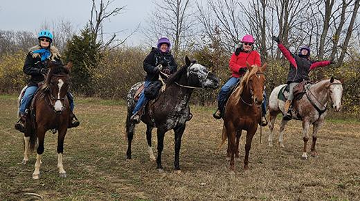 harmful plants for the safety and wellbeing of our horses through the winter months ahead. Several of our chapter members attended the Morgan County Regional ride at the Appalachian Hills trails. What a nice fall day to ride their fantastic trails. Everyone had a good time from riding the trails to camping with lots of food and visiting friends. Thank you to the Morgan County chapter for a good time. Our chapter trail ride and children’s ride at Kinderhook for Wayne National was October 18. We had a good turnout for the ride, along with chapter members to walk the horses for the children to ride in the afternoon. Thank you to all members who attended and helped make this a great day for possible future horsemen and women to learn to ride and enjoy horses. One never knows when horse fever may strike and spark a flame for the future love of horses in our younger generation. Help keep the flames alive so they can dream about owning their own horse, and one day they may make that dream a reality. Keep your blanket wet, your saddle warm, your bridle handy, the trails cleared and ride on. Stay safe and count your blessings.
