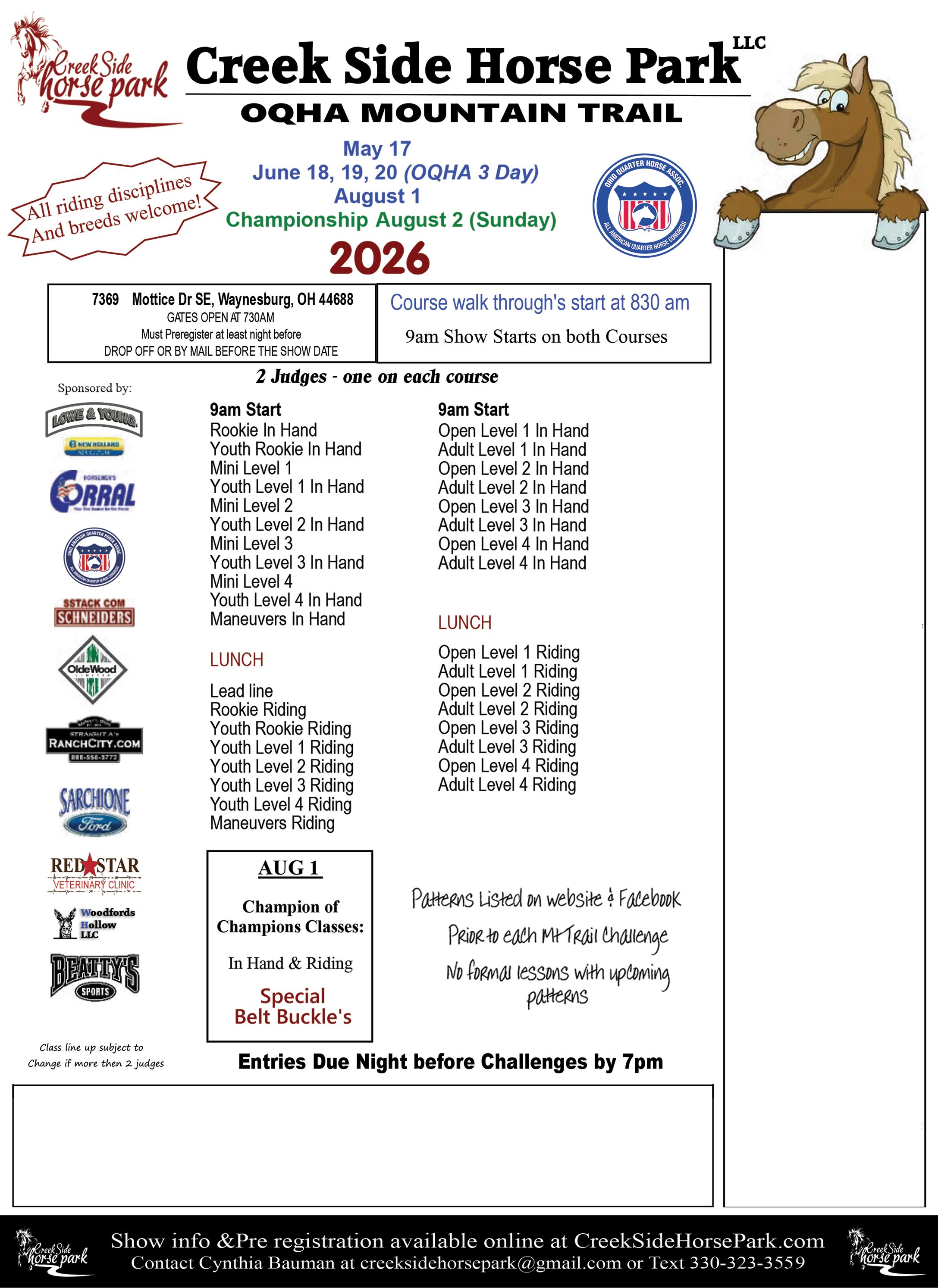 City State Zip Mail to: Horsemen’s Corral, PO Box 32, Lodi, OH 44254 or email address change to: michelle@thehorsemenscorral.com