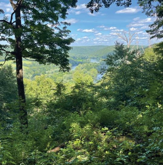 Hickory Creek Wilderness Camp situated in the realm of Tidioute, Pa., was our destination for a fourday mid-August OHC trail ride. We elected to camp beyond the barn where primitive and electric sites co-mingled, beneath a canopy of old growth woods. One campfire served our party of six adequately. Two rigs with living quarters illustrated a comfortable attractive formation, while Alice and Holly had strung their hammocks before daylight faded, within a copse of pines. Weather alerts were issued, the camp manager announced, indicating forthcoming hail and high winds, accompanied by rainfall. Sleeping arrangements were altered. Holly reluctantly hung her hammock within the two-horse slant and Alice unfurled her bedroll in the back of her SUV to avoid the hazardous conditions forecasted. Friday dawned without incident. Kendall and Rayna intended to ride at a leisurely pace, with every intention of meeting at the scenic lookout featured on our trail map.
