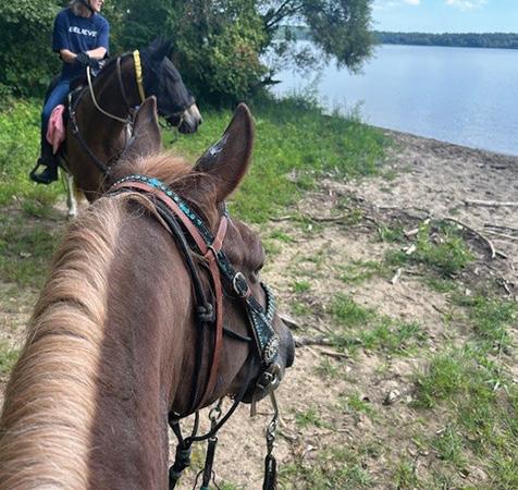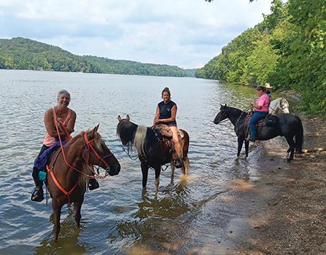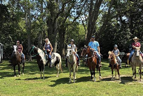 gone. Two of the photos this month are from that ride. I’m not sure of who took them, but I got them from Belinda Snell and Barb Pfantz, so thanks to them. You’re Over the Hill Gang has continued to work on the trails. We’ve been concentrating around camp, because of the 4-H Competitive Trail Ride on September 6. But the contractor has also been out working on the heavy spots, and the park was able to get the mini-excavator to clear a big tangle of trees just above the boat ramp that would have taken us forever to do. The trails down to the lake have been widened and improved. The aim is for my UTV to be able to fit easily. It’s been mostly successful, though there was a mishap where it slid and got trapped between two trees. It took Tom Prudhoe and Harold McKeehan and both their chain saws plus quite a bit of work to get me free, but they got it done. And that spot is wider now. As of this year, we’re no longer having an August Saturday workday. Since the Abi-Khan+ Challenge endurance ride is no longer, we felt there was no need to hold one when it was sweltering (but as ride manager, I appreciate all the years it was held!). We talked about holding one in the fall, and since there’s an endurance ride at the park on November 1, we’re holding it on October 11, with a rain date