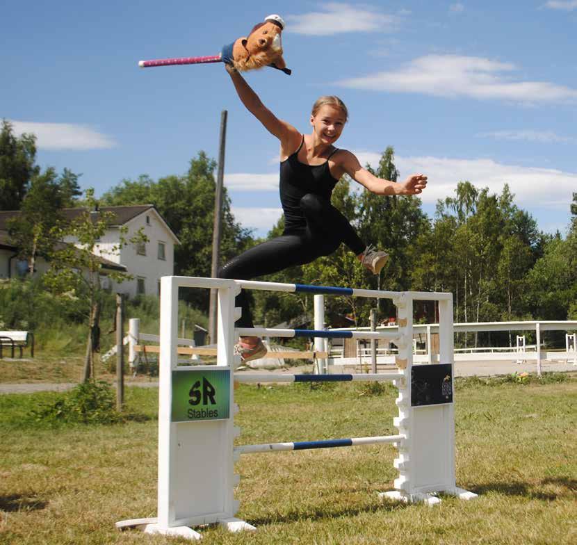 STARTEN: Begynte å ri som ganske liten, fulgte med mamma (og veterinær) Guri Haarr, men valgte sprang fremfor dressur.