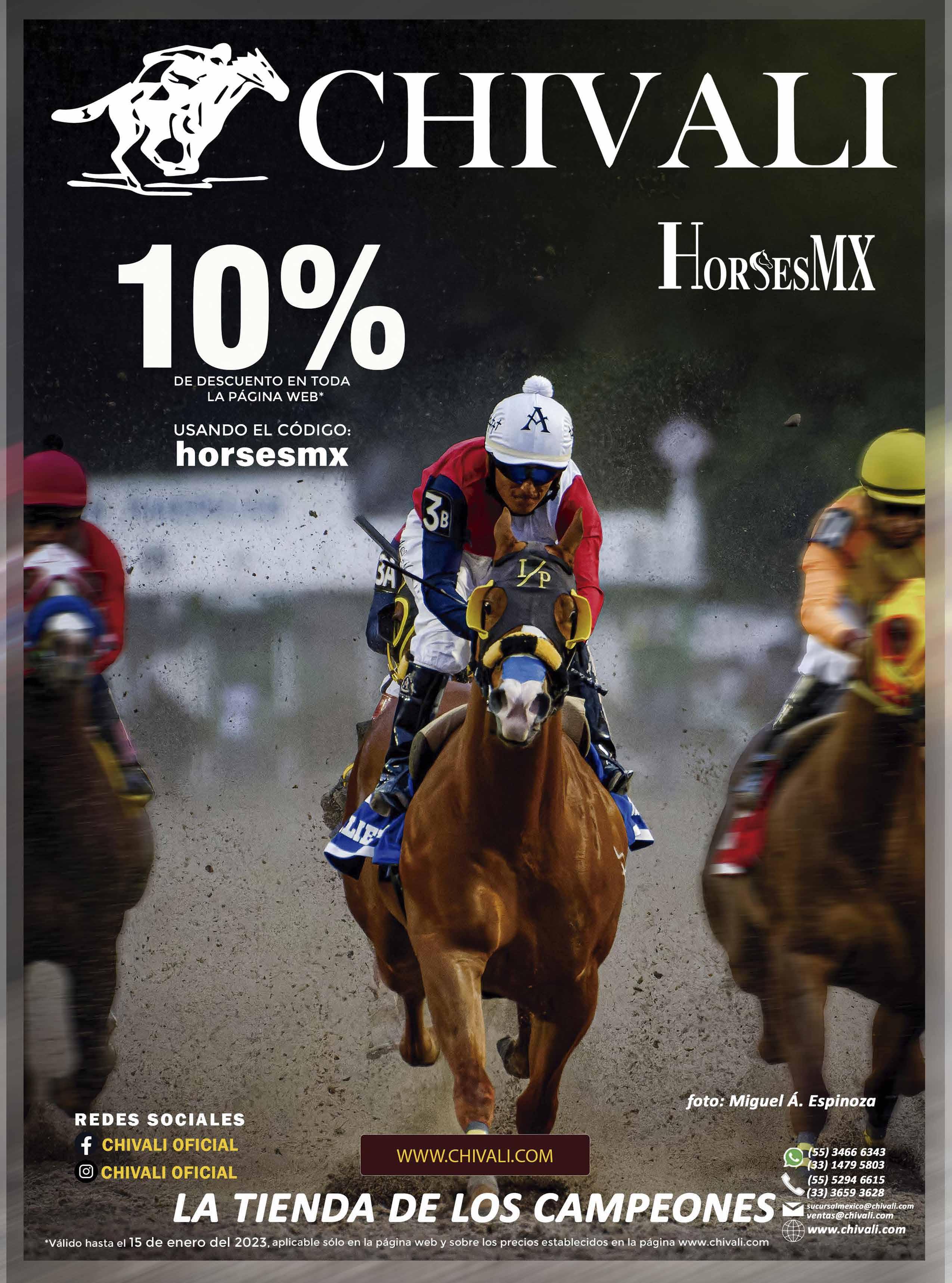 Mail: revistahorsesmx@gmail.com • Revista HorsesMX Instagram: Revista HorsesMX Nº de Reserva al Título en Derechos de Autor: 04-2021-071613482200-102, Nº de Certificado de Licitud de Título y Contenido: 17485 Este número se terminó de imprimir en Noviembre de 2022 en Fotomecánica Digital Yepez, Emilio Carranza 140 B, Col. San Andrés Tetepilco, Iztapalapa, C.P. 09440, Ciudad de México. Distribuido por: IBERMEX: World Park: Avenida 2 de Marzo No. 120, Bodegas 6 y 7, Barrio San Juan Xocotla C.P. 54960, Municipio de Tultepec, Estado de México. Consulte el Aviso de Privacidad en: www.revistahorsesmx.com/avisodeprivacidad.pdf