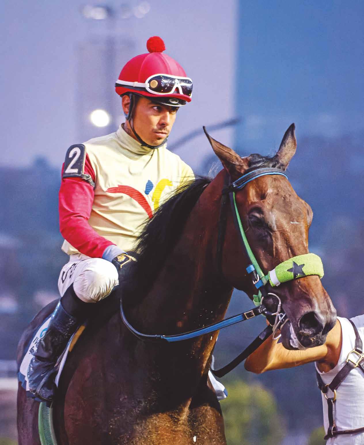 Excelente actuación del jockey Flavien Prat (Fotografía: ©Carlos Calo/Eclipse Sportswire)