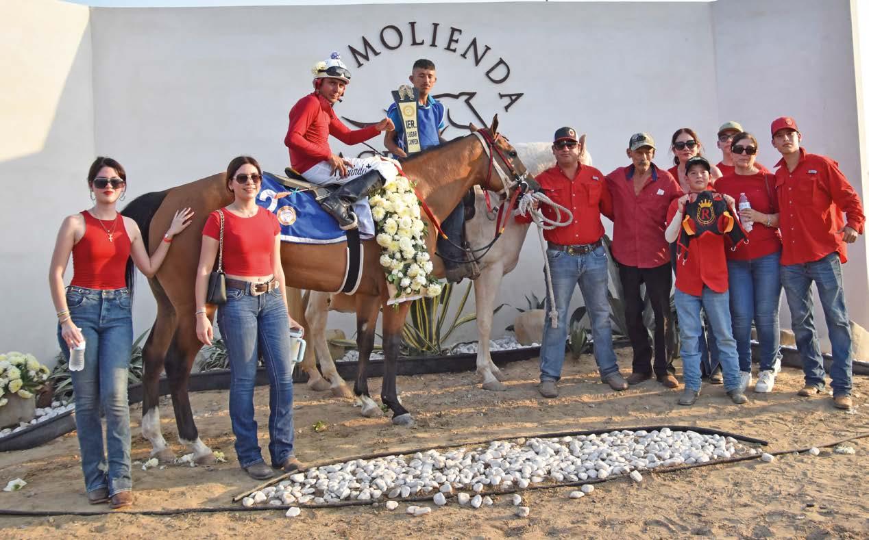 En el marco de emocionante y variada jornada de 29 carreras, Cuadra La Molienda reafirmó ser una de las más fuertes del noreste al llevarse claramente las victorias en la Consolación y luego la gran Final del Futurity Millonario, donde firmó el 1-2-3. El Futurity Millonario, evento estelar de cada año de la famosa pista de Nuevo Laredo, reunió a lo mejor de lo mejor de la caballada de la zona noreste de México, principalmente de Nuevo León y Tamaulipas. También fue la oportunidad para ver en acción a destacados jockeys de la zona y visitantes de otros lugares, entre los que vimos al ganador Cristóbal Moreno, “El Rey del Fuete” Hugo Chávez, Alejandro Gómez, Juan Villegas, Eddi Cuéllar, Toñito Aguiñaga, Miguel Landeros, Pedro “La Plancha” Galindo, Rubiel Patraca y Samuel Murillo, cada uno de ellos con toda la actitud y muchas ganas de llevarse la parte grande del premio. A la hora de la carrera, el numeroso público ocupó centímetro a centímetro de las largas vallas metálicas para presenciar por primera vez un arrancadero a toda su capacidad, pues fueron 10 los finalistas, número de corredores que nunca se habían visto juntos en los más de 30 años de historia de esta pista fronteriza. Recordemos que en el Futurity Millonario de 2023, ganado por El Nevado de Cuadra Dr. González, fueron nueve los participantes.