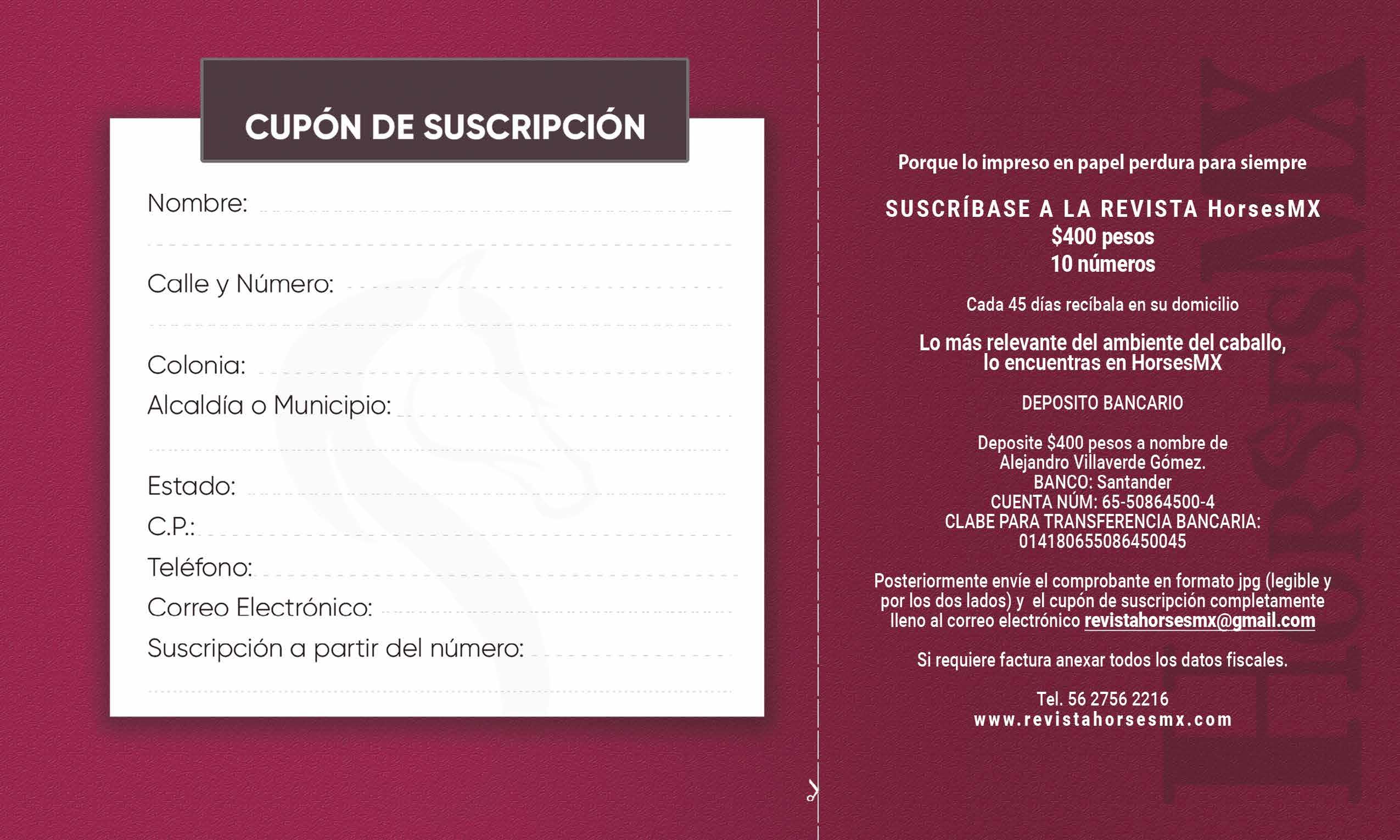 DIRECTORIO EDITORES: Miguel Juárez Salazar • Alejandro Villaverde Gómez • COORDINADORA EDITORIAL: L.C.C. Lorena Picazo Sosa • COORDINADORA CREATIVA: Guadalupe Franco Valdez • FOTOREPORTERO: Elliott León Patiño • DISEÑADOR WEB: Jorge Pérez Luviano • DISTRIBUCIÓN: Edgar Alejandro Alfaro Castro • COLABORADORES • MEDICINA VETERINARIA: MVZ Daniel Hernández Mandu jano • MVZ Enrique Obregón • MsC Karina Obregón Jurgens • INTERNACIONAL: MV Enrique Castillo • FOTOGRAFÍA HIPÓDROMO: AMH - Miguel Ángel Espinoza • AMH - Juan Carlos Velázquez • FOTOGRAFÍA DE CARRERAS: Patricio González (PG), Golden Friend Photos HorsesMx Nº 11 Vol. 2, Septiembre - Octubre 2022, es una publicación editada cada 45 días. Ciudad de México, México • Editor Responsable: Alejandro Villaverde Gómez • Tel. 56 2756 2216 • www.revistahorsesmx.com • e- Mail: revistahorsesmx@gmail.com • Revista HorsesMX Instagram: Revista HorsesMX Nº de Reserva al Título en Derechos de Autor: 04-2021-071613482200-102, Nº de Certificado de Licitud de Título y Contenido: 17485 Este número se terminó de imprimir en Septiembre de 2022 en Fotomecánica Digital Yepez, Emilio Carranza 140 B, Col. San Andrés Tetepilco, Iztapalapa, C.P. 09440, Ciudad de México. Distribuido por: IBERMEX: World Park: Avenida 2 de Marzo No. 120, Bodegas 6 y 7, Barrio San Juan Xocotla C.P. 54960, Municipio de Tultepec, Estado de México. Consulte el Aviso de Privacidad en: www.revistahorsesmx.com/avisodeprivacidad.pdf Copyright 2021. Derechos reservados. Fotografía, diseño y anuncios elaborados por la Editorial, son propiedad exclusiva de la misma.SE PROHIBE LA REPRODUCCIÓN TOTAL O PARCIAL DEL MATERIAL SIN AUTORIZACIÓN ESCRITA DE LA EDITORIAL. EL CONTENIDO DE LOS ARTÍCULOS ES ÚNICAMENTE RESPONSABILIDAD DEL AUTOR. No.11 Vol.2 Septiembre - Octubre 2022