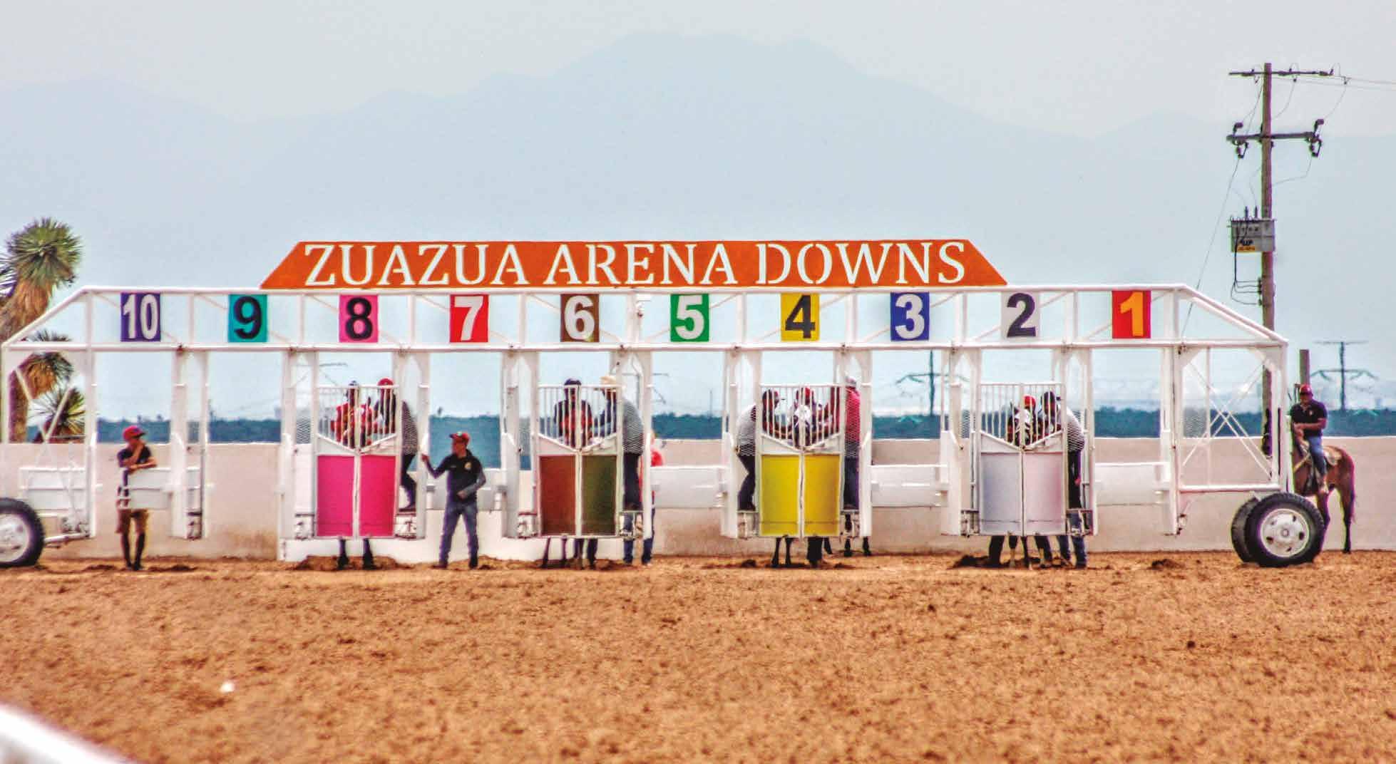 tel y crianza de Abelardo Gallegos, y Unodk, hijo de Bullish One criado en La Presita. Estos ocuparon los cajones 2 y 3. Como independientes saltaron a la pista Manny Storm, un hijo de Red Storm Cat criado por Luis Arturo Vázquez, e Isabela Arandas, potran ca de Cuadra El Renacimiento e hija de Ze Dancer Arandas criada por Félix Bañuelos. Estos salieron de los casilleros 7 y 8.