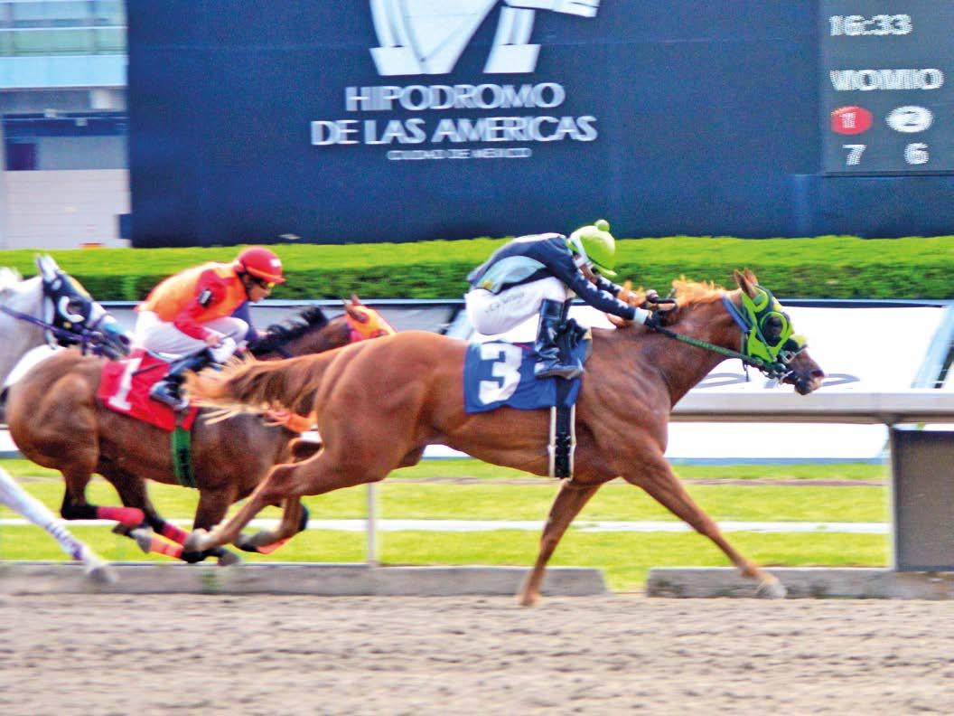 El jinete Gerardo Ortiz perdió el fuete en los primeros metros montando al potrillo de Cuadra El General, y aunque le echó ganas, ya nada pudo hacer ante el corredor de Cuadra MR