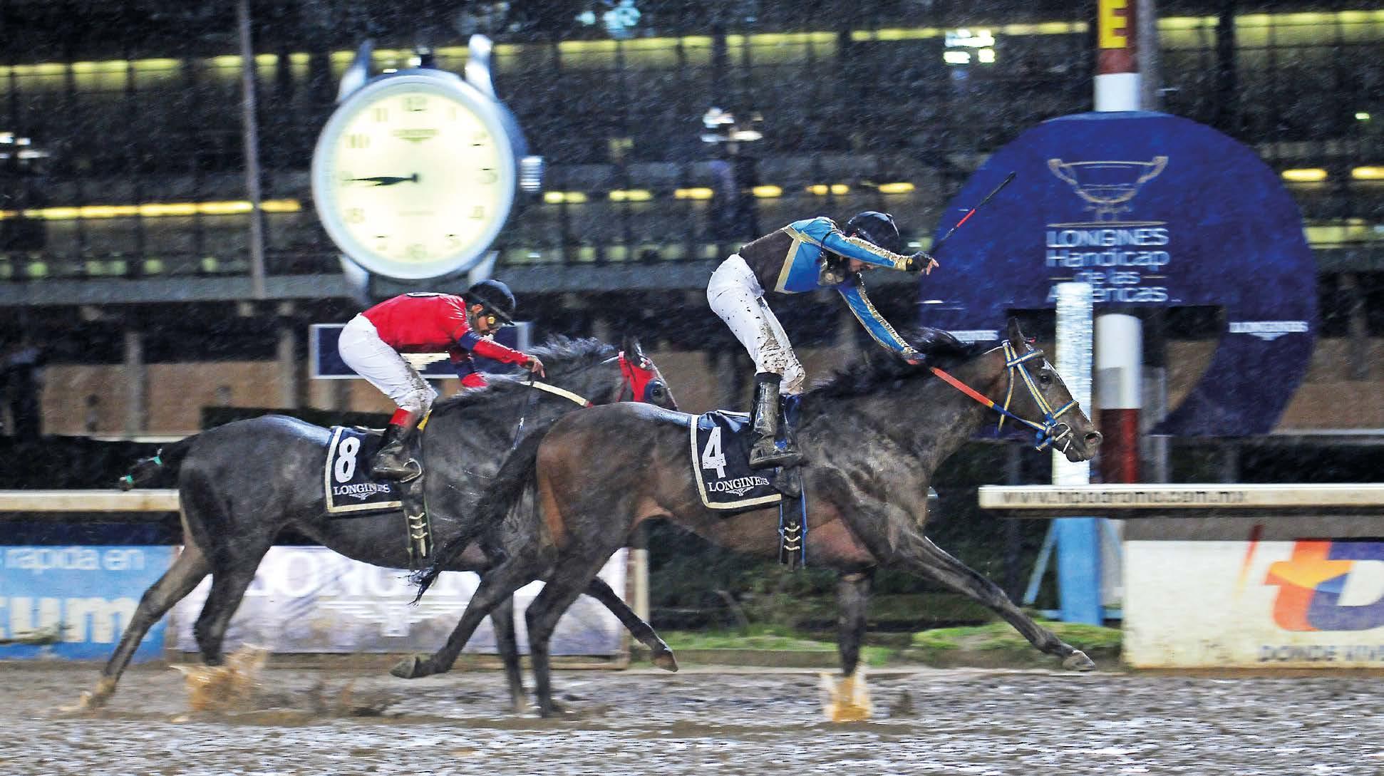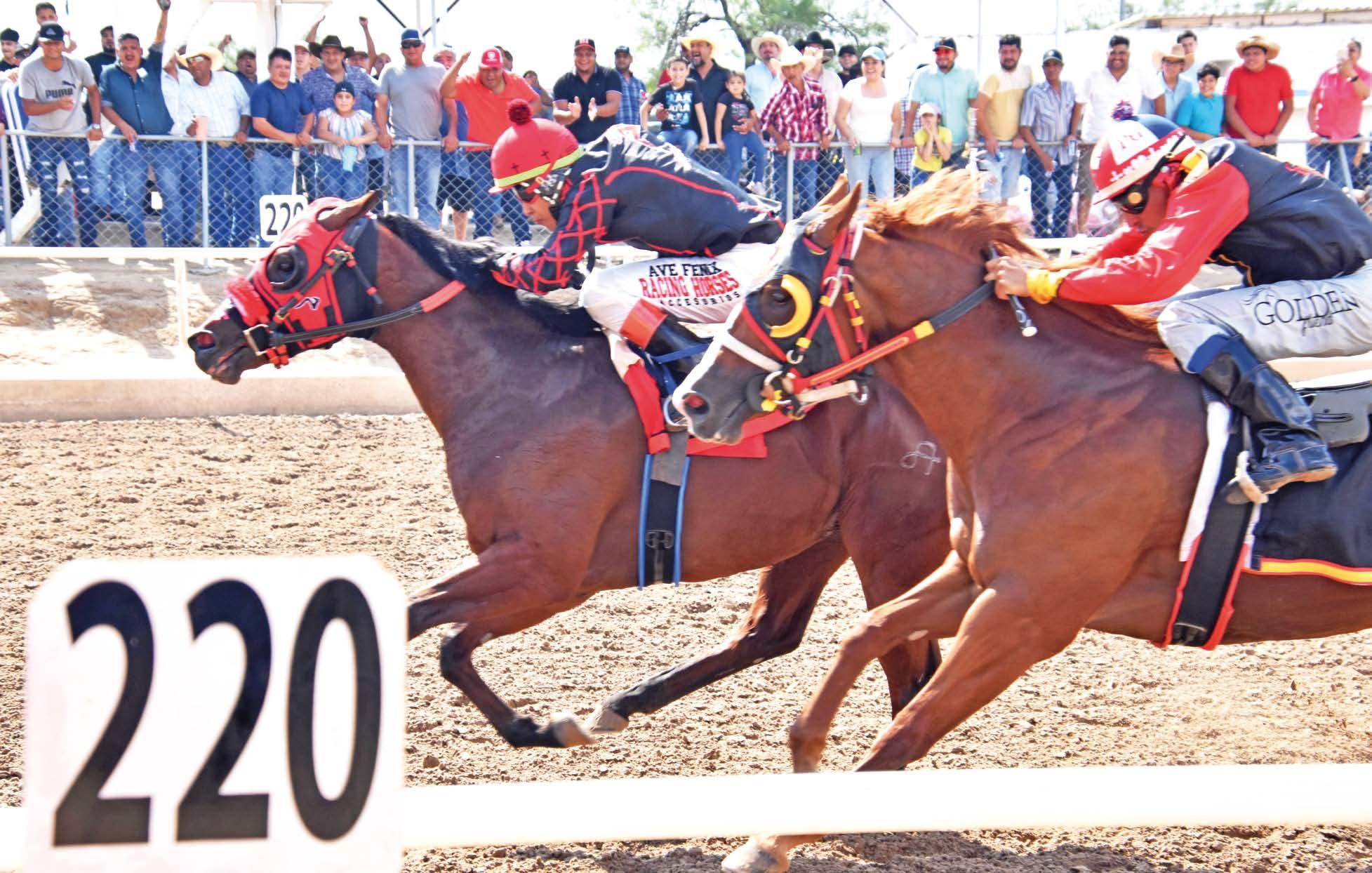 Emoción de este nivel disfrutó el público al conmemorarse el segundo aniversario del Club La Molienda Horses Race Track. En la imagen, El Numerito, de Cuadra La Molienda, superando con apuros a La Lluvia, de Cuadra Sonora