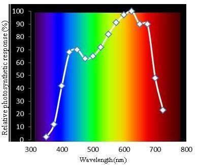 Plants respond to different wavelengths in the PAR range. McCree (1972) studied the spectrum used by plants, describing absorption peaks at different wavelengths and establishing the curve of the action spectrum of photosynthesis.