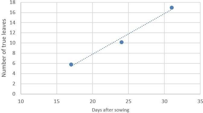 In the pre-grafted period, high light intensities (200 μmol/m2.s) are recommended to shorten the cultivation time in no-natural light environment. For example, in experiments conducted by the Plant R&D department of Valoya with AP673L spectrum, tomato seedlings reached 6 true leaves in 20 days at 100 μmol/m2.s when at 200 μmol/m2.s the time was shortened to 17 days (Figure 12).