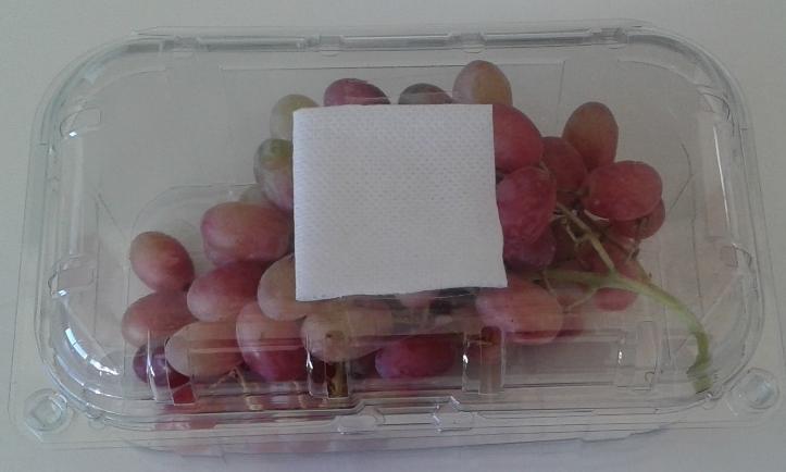 Figura 1 Caja de uvas con el tratamiento poscosecha aplicado