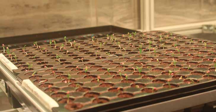 TRAYS ARE MOVED FROM A SEEDING AREA TO A HARVEST AREA OVER ~28 DAYS