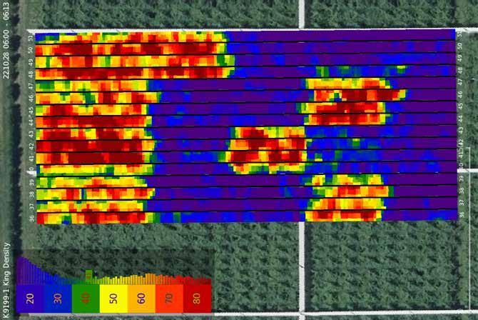 The amount of data and information being captured on an operational basis is ever increasing as we look towards a precision approach to growing. This has the potential to serve us well as an industry as we seek to trial innovative solutions to our unique challenges. It also offers opportunities to increase our observations or data points within trials without the heavy reliance on people resource. The digital crop load scan in Figure 1 is a great example of this in action. This was a grower-led trial in kiwifruit (supported through a Zespri Innovation Project) whereby new products were being trialled in a replicated ‘large plot’ set-up applied with a commercial sprayer. The heat map shows fruit density results – spot the ineffective plots!