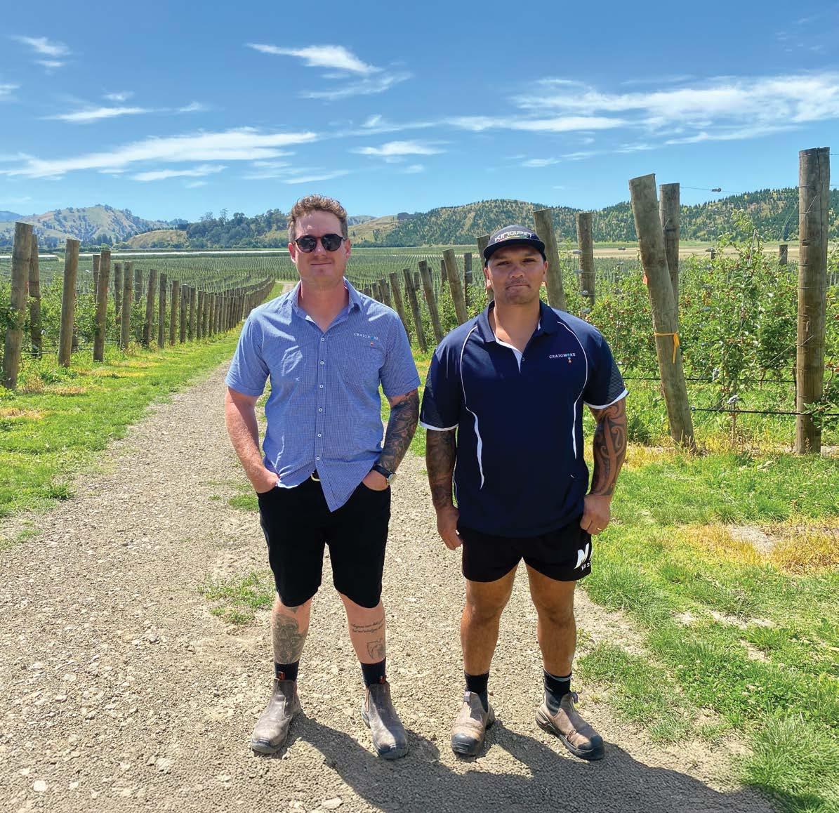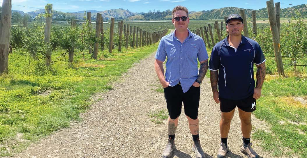 Craigmore Sunpark orchard in Te Karaka with apple orchard manager Joshua Rowe and assistant manager Chief Nepe. Photo by Kim Parkinson. See page 8.