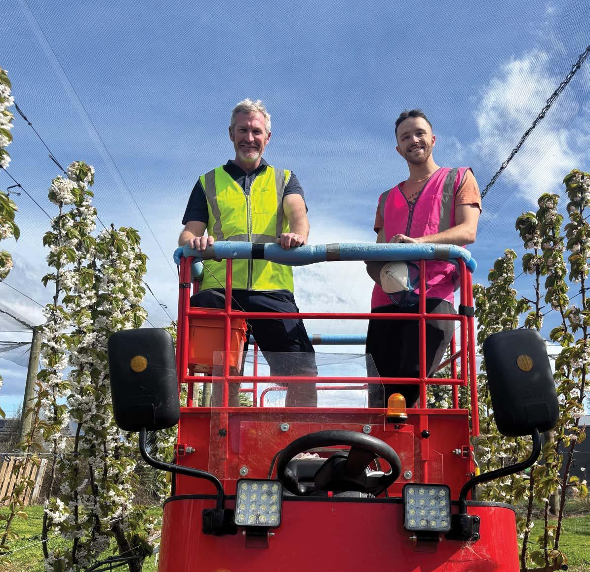 Electric Cherries’ Euan White with orchard technician Mahe Pivert, of France. See page 12. Photo by Aimee Wilson.