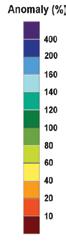 Figure 1 : Air pressure anomalies (differences from average) for three analogue La Niña summers. Red colours indicate higher than normal pressure while blue areas show lower than normal pressure