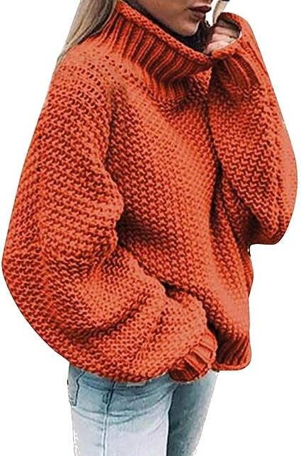 Sueter color ladrillo, con cuello de tor tuga, de punto trenzado. Es un sueter grueso, que se puede usar holgado, para salir a pasear, combinado con un jean.