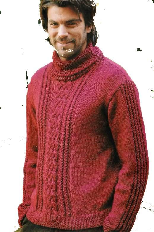 Sueter con cuello alto, color bordó o rojo oscuro. De lana semigorda (50% lana y 50% acrílico). El frente es de tejido trenzado, y es muy elegante para vestir en este invierno.