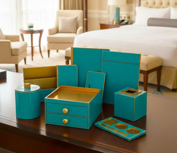 We use a wide range of materials—leather, wood, lacquerware, steel, glass, acrylic, resin, fabrics, and more—to create innovative products that elevate your brand and enhance the guest experience. Our offerings are featured in luxury hotel rooms, baths, spas, restaurants, meeting rooms, and public spaces worldwide, serving both retailers and B2B clients.