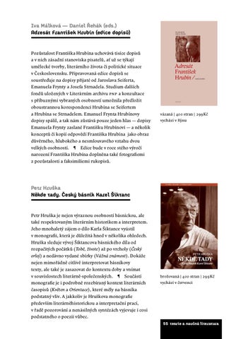 časopisů (Květen a Orientace), které měly na básníka podstatný vliv. A jakkoliv je Hruškova monografie především literárněhistorickou a interpretační prací, v řadě pozorování a nenásilných syntézách vyjevuje i cosi podstatného o poezii vůbec. 55 teorie a naučná literatura