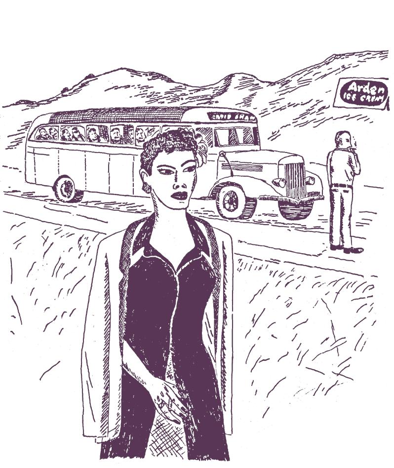 Někdy jsme jeli na jeden zátah šest set mil dlouhou štreku, než se zastavilo. A pak tam bylo místo, kde mě odmítli obsloužit, nebo z toho přinejmenším koukala scéna. Nejdřív jsem se za to styděla. A pak jsem se rozhodla vykašlat se na to. Když se mi chtělo, řekla jsem řidiči autobusu a on mi zastavil někde na silnici. Radši jsem zaběhla do křoví, než abych měla napnutý nervy a pokoušela štěstí v restauracích.