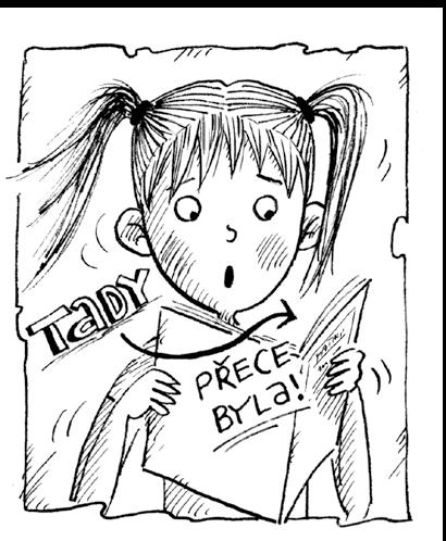 „Fíííííííí,“ vydechla a vykulila oči. Pak otočila dva listy dopředu a tři dozadu. Nevěřícně zírala do sešitu. Jednička nikde! Prstem