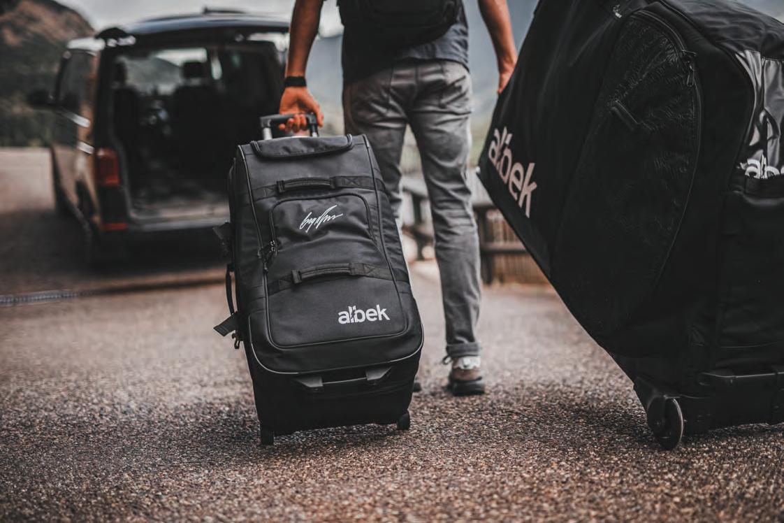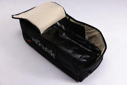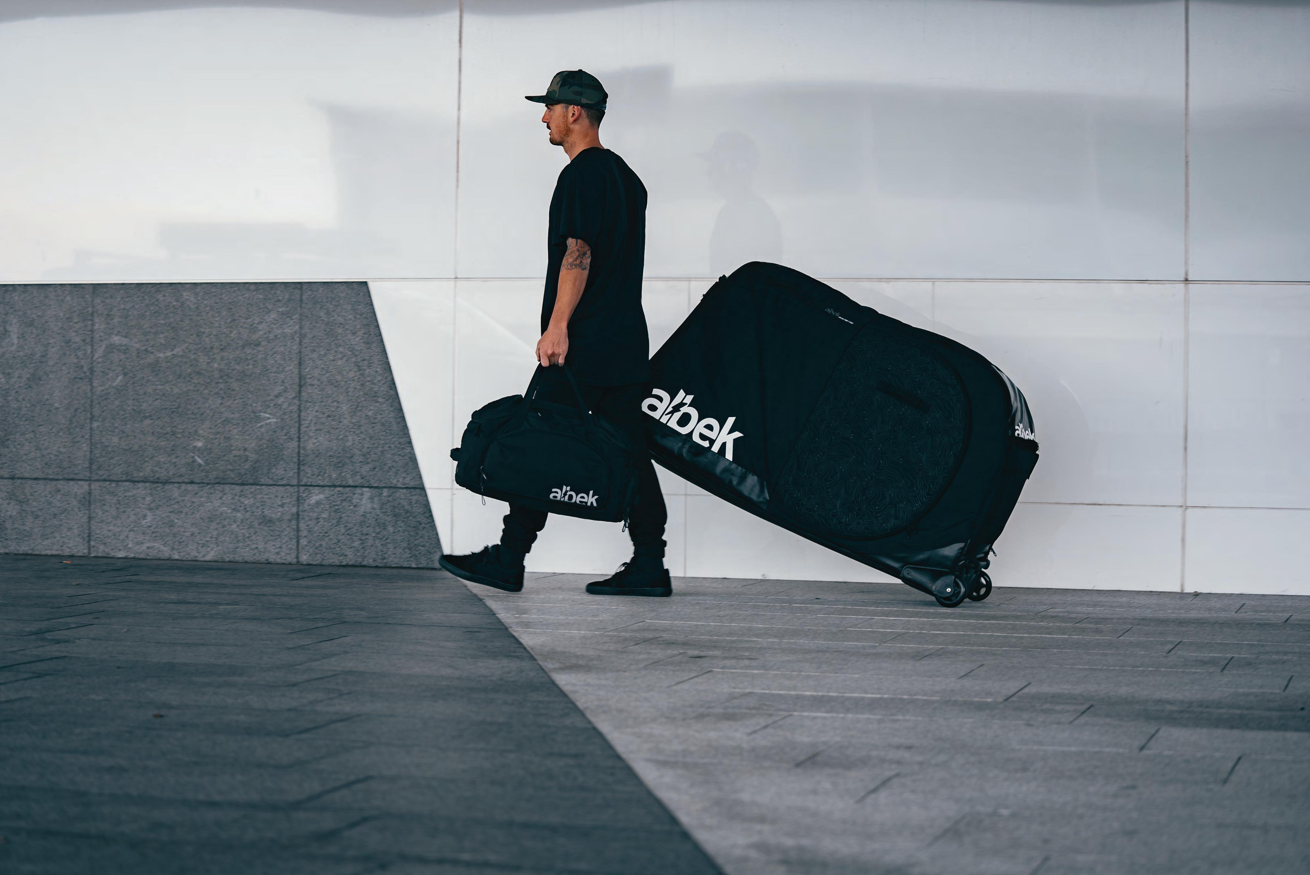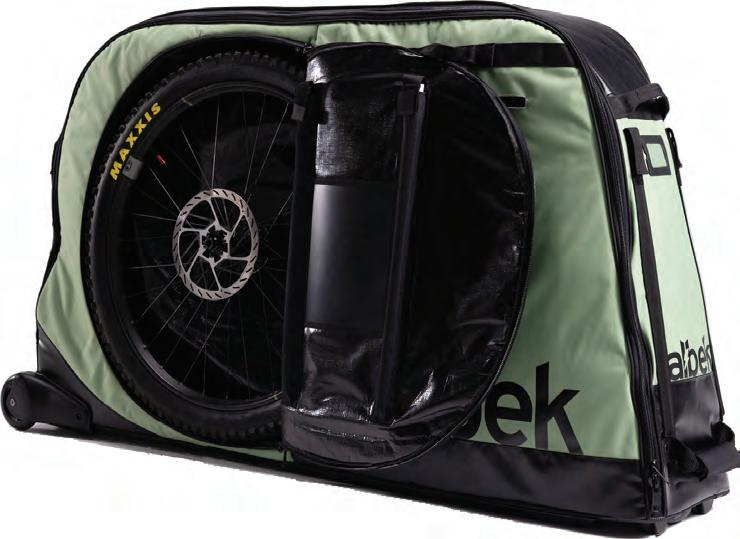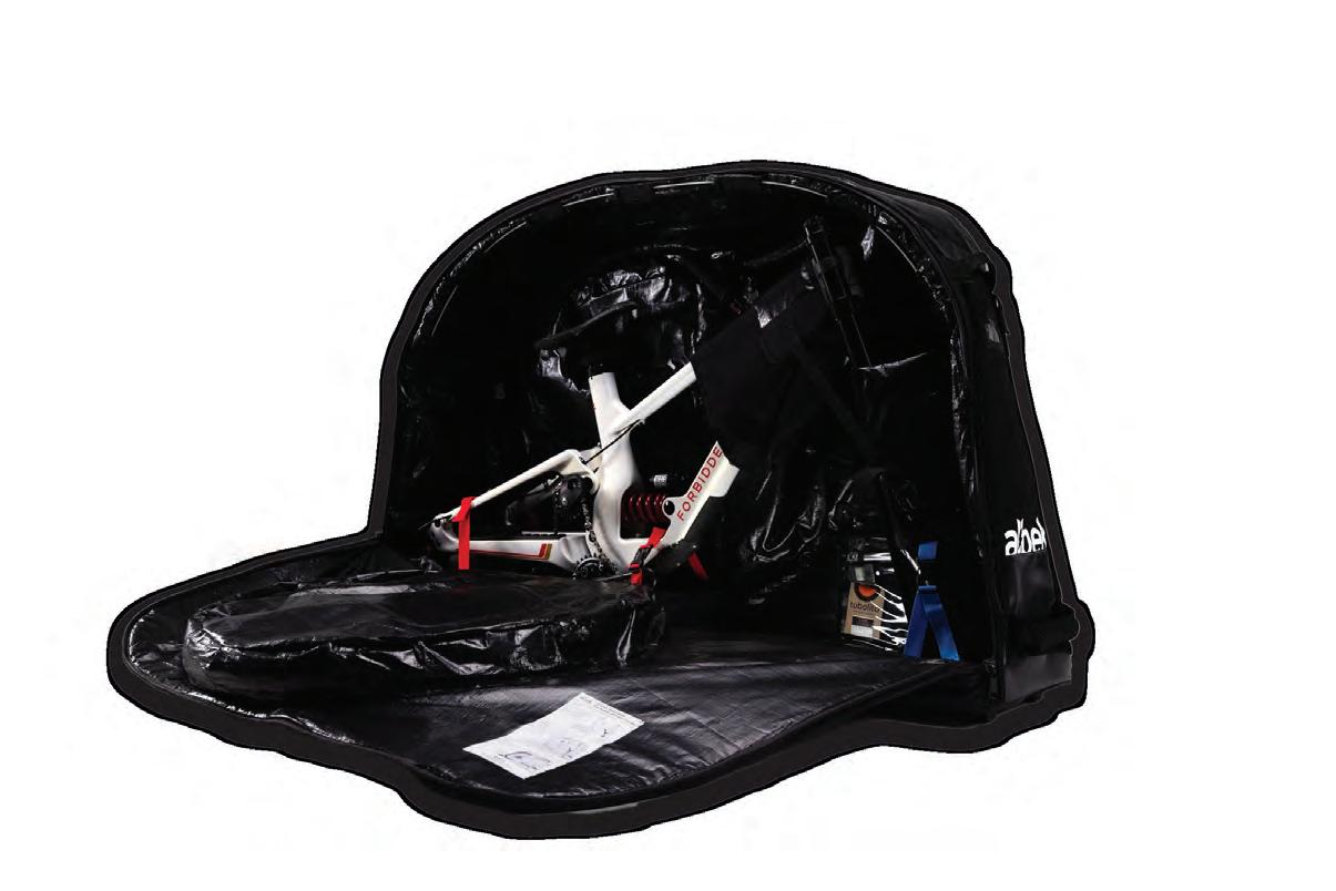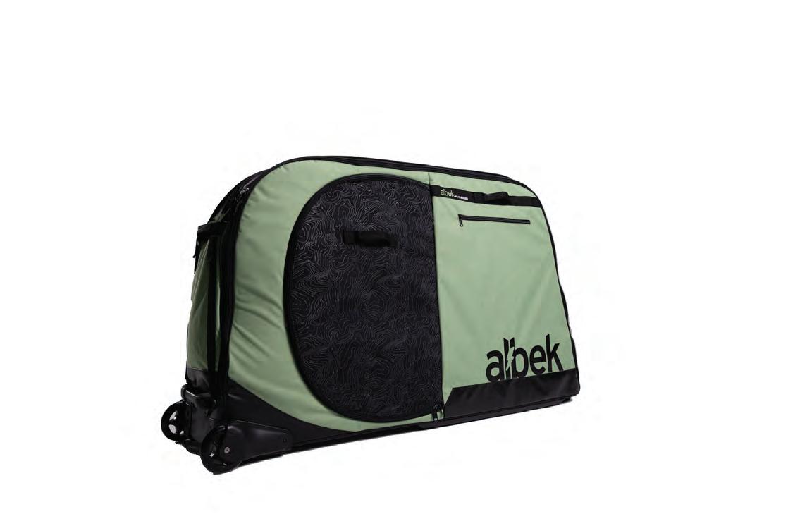 Featuring Albek’s moulded lightweight reinforced honeycomb base, reinforced wheel assembly, padded wheel pouches, and an EVA frame stand that stabilises your frame while in transit. The padded fork bag and frame/handlebar attachments all combine to integrate the frame of your bike into the structure of the bag, creating six points of attachment. This makes both packing and manoeuvring much easier. With frame geometry constantly evolving, we created a bag that accommodates longer frames while still being lighter than competitors’ smaller bags.