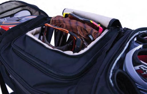 The Meridian Gear Bag features four specific compartments: a vented boot pocket with waterproof lining, a fully vented, soft-lined helmet compartment, an integrated, lined goggle vault with a separate internal pocket for lenses, tear-o s and other accessories, a stash-away change mat, and top-load carry handles, making the Meridian race ready.
