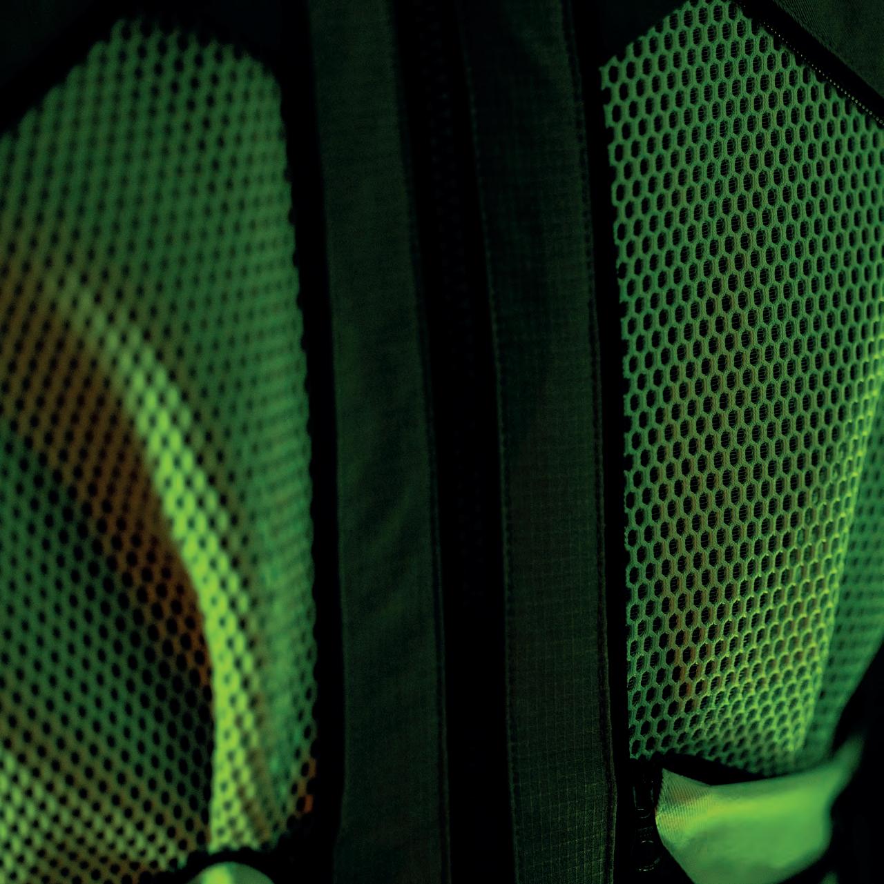 Mit nur 1,4 kg Gewicht und aus strapazierfähigem X-Stretch Ripstop sowie atmungsaktivem 3D Aero Mesh gefertigt, bietet die Weste ein durchdachtes Gleichgewicht aus Schutz, Bewegungsfreiheit und Belüftung. Das Ergebnis: ein Sicherheitsfeature, das sich dezent in den Alltag einfügt – und dabei kaum spürbar ist.
