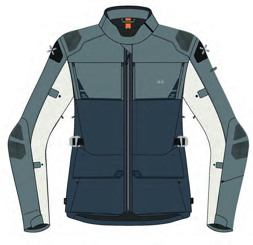Moto Skin – "Weather Skin": Bei Regen bieten sowohl die GORE-TEX® wie auch solto-TEX® Jacken und Hosen zuverlässigen Schutz, sprich maximale Wasserdichtheit und höchste Atmungsaktivität. Alternativ kann die Ausrüstung mit einer speziell dafür vorgesehenen Regenjacke und -hose ergänzt werden, sollte die Wahl auf eines der Air- oder BigAir-Produkte fallen.