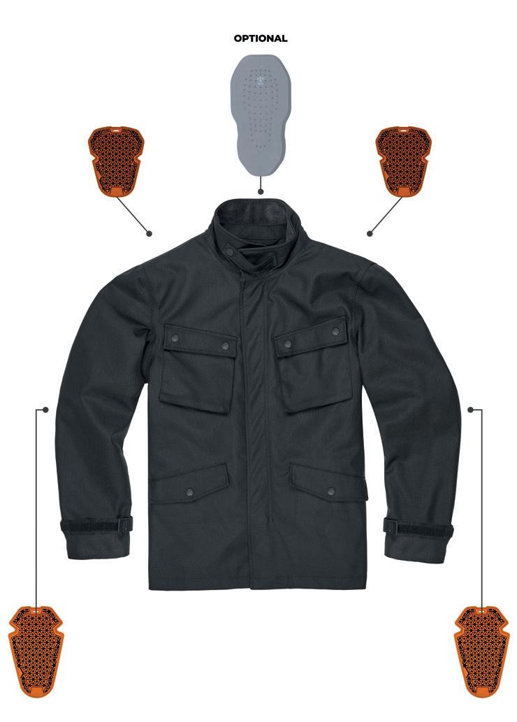 • D3O® Diablo L2 CE (EN1621-1:2012) level 2 approved elbow and shoulder armor INCLUDED.