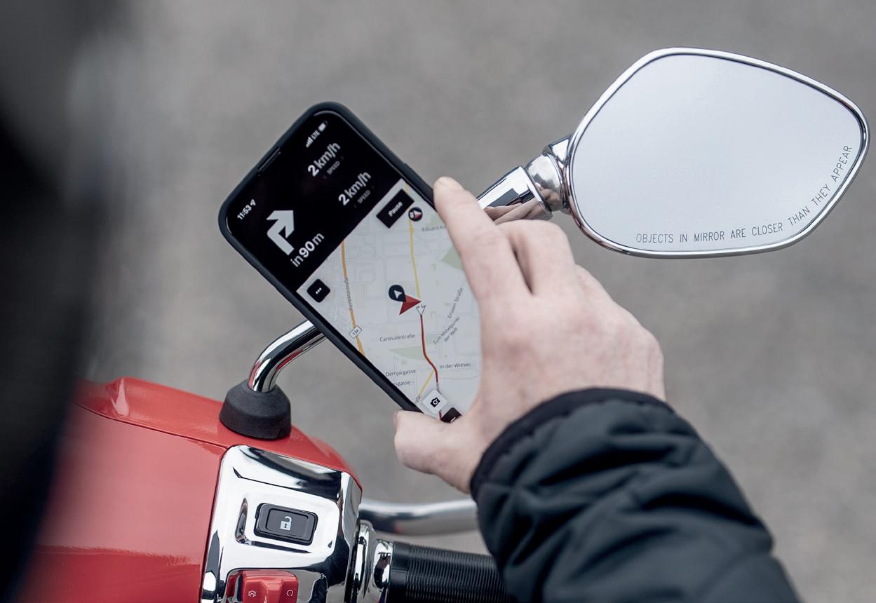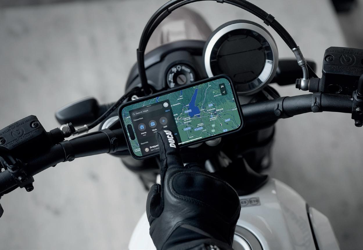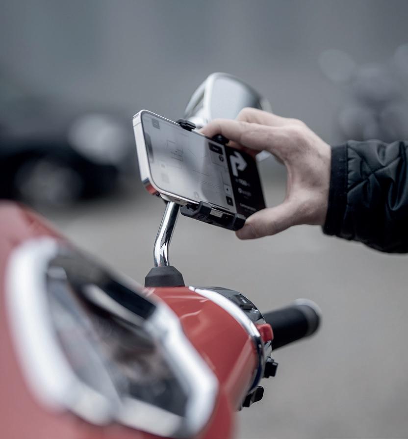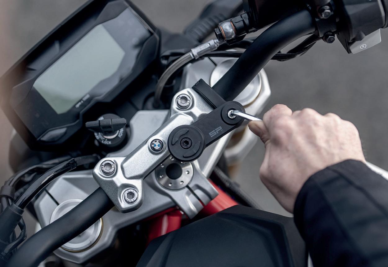 Mount your mobile phone in the desired position on the handlebar clamp of your motorcycle.