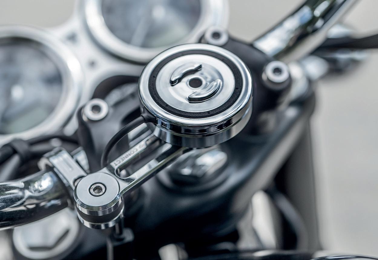 Perfect for oversized and ape hanger handlebars - with this chrome mount, you are guaranteed to find the perfect spot for your smartphone on your motorcycle!