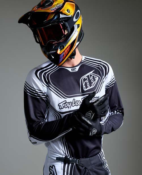 utilizes a flexible, impact absorbing D3O™ insert. Troy Lee Designs Air Channels direct airflow on the back panel and a silicone-infused cuff resists slippage.