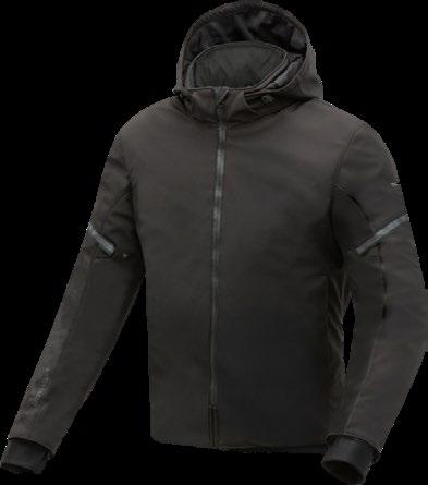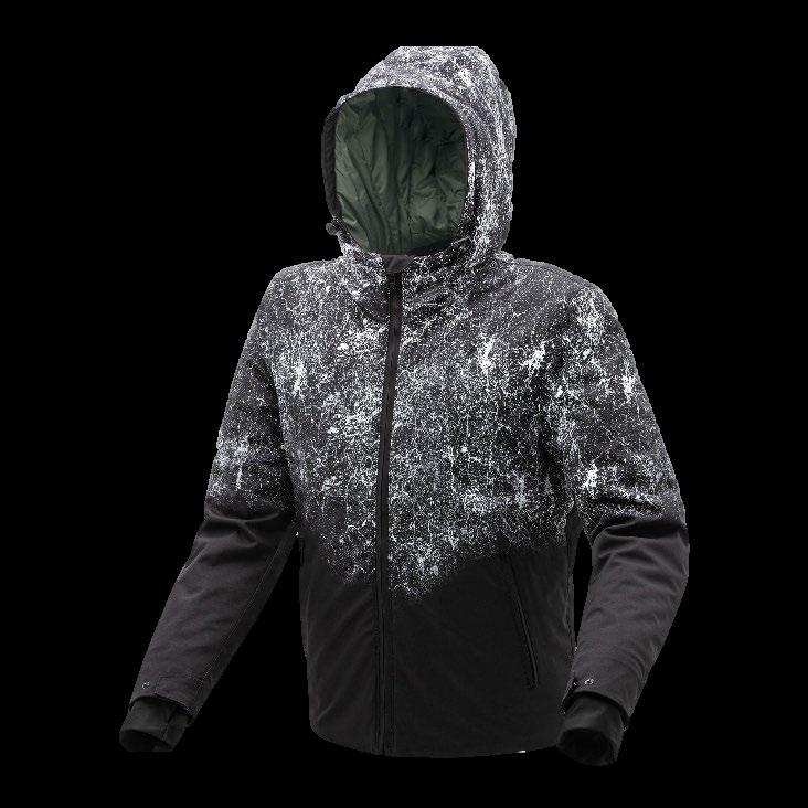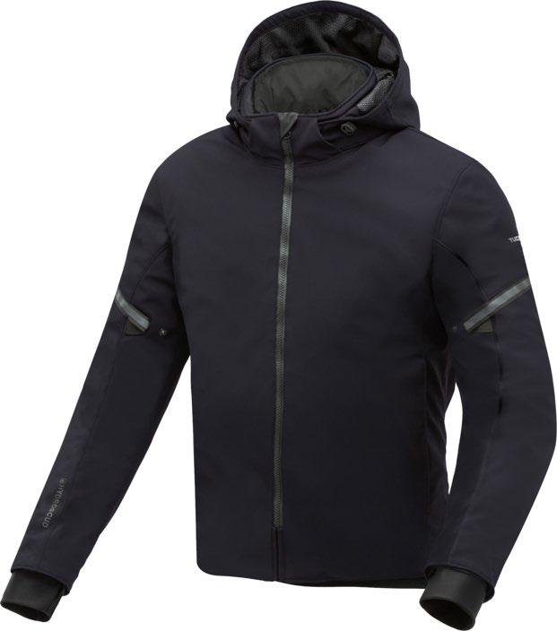 • Coque extérieure en tissu stretch technologique tricoté et microfibre.