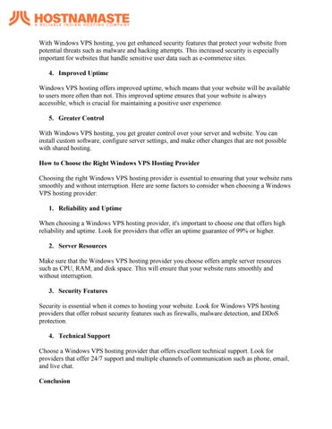 When choosing a Windows VPS hosting provider, it's important to choose one that offers high reliability and uptime. Look for providers that offer an uptime guarantee of 99% or higher.