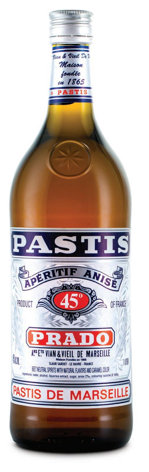 Pastis Prado was founded in 1923 when pastis was extremely fashionable in France. Smooth and refreshing, it is a popular expression of pastis in its birthplace, Marseille. Pastis Prado is enjoyed as an aperitif and is commonly used for cooking in savory seafood dishes, such as steamed mussels. 45% ABV