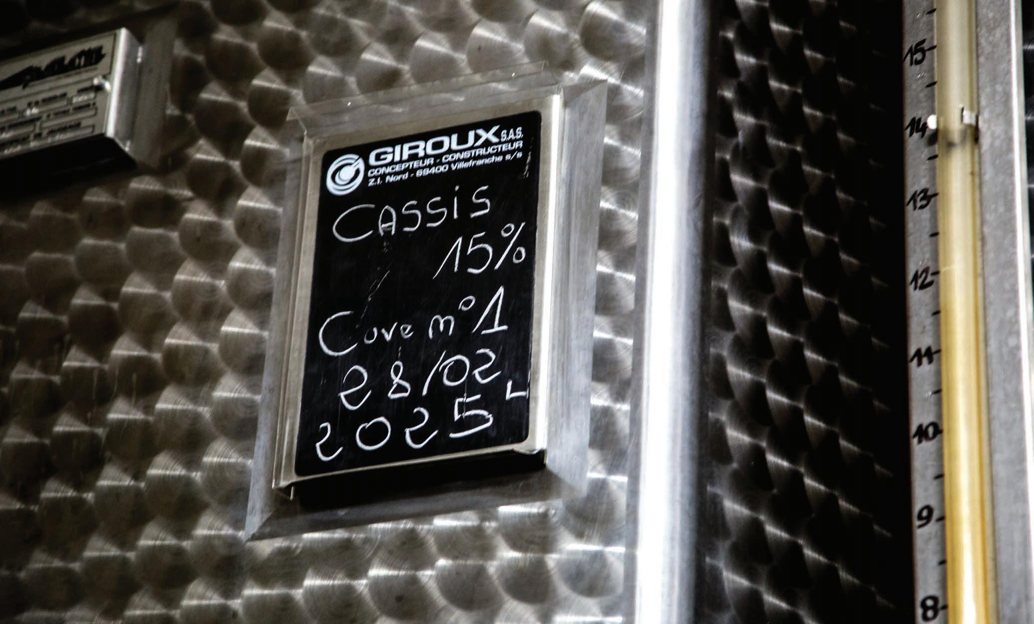 BOTTOM || A batch of cassis is macerating in a stainless steel tank. Briottet cassis follows a simple recipe of noir de bourgogne black currant, neutral alcohol, water and sugar.