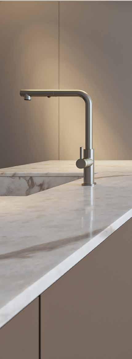De afwerking op de hendel van onze Archie serie heeft dezelfde lichtspiegeling als een grammofoonplaat en geeft de kraan net die extra Touch. In de juiste belichting schittert deze kraan als geen ander. Samen met de verdere hoogwaardige geborstelde afwerking is het echt een ‘eyecatcher’ in elke ruimte.