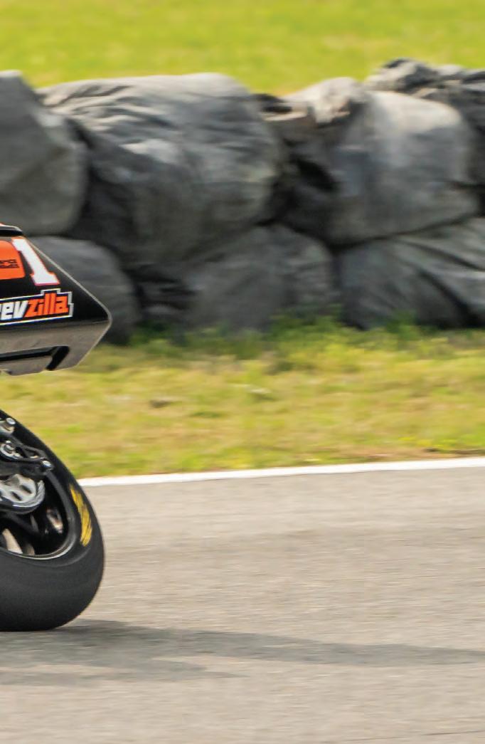 Rispoli also shared, “The bikes are so heavy compared to normal race bikes, so optimizing the tires is difficult. The tires drop off and it’s hard to manage them. The bikes are aircooled, so you need to keep them cool and can’t ride as hard as you might like. They are easier at some tracks and it’s easier to find what seems to be the limit, but the limit is so high and