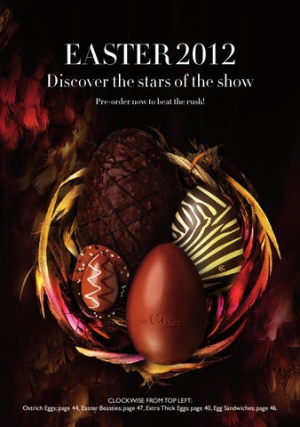 Clockwise from top left: Ostrich Eggs; page 44, Easter Beasties; page 47, Extra Thick Eggs; page 40, Egg Sandwiches; page 46.