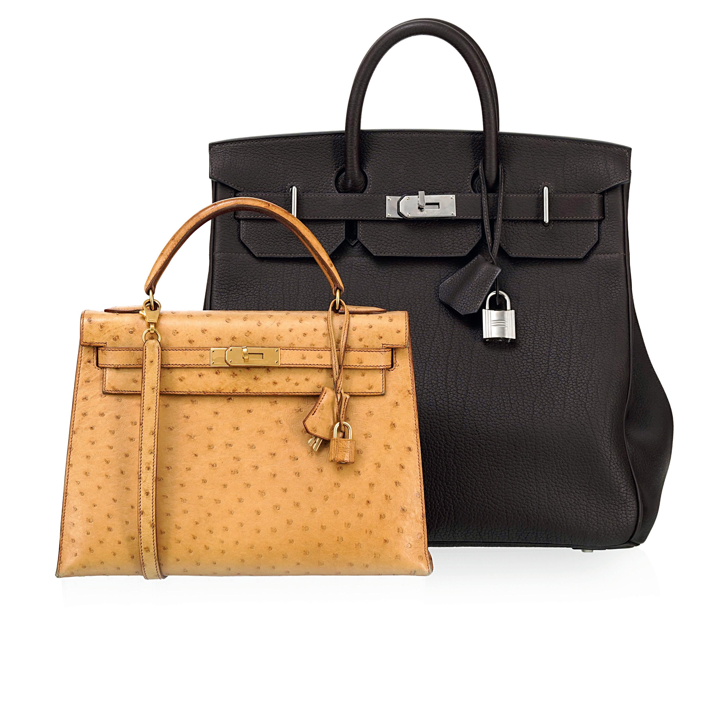 Hermès, sac Kelly en autruche Gold
