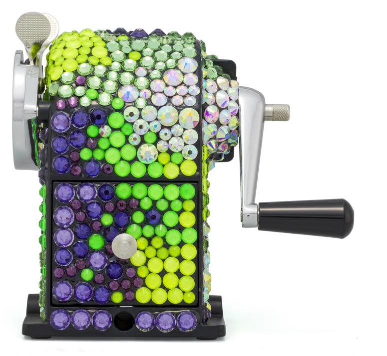 unique de machine à tailler en métal, modèle produit depuis 1933, est ici entièrement rhabillée de 1000 cristaux appliqués à la main dans une palette de couleurs Ultra Violet Seulement trois machines à tailler ont été réalisées pour la collection «Les Fulgureuses», chacune unique par sa palette de couleurs éclatantes. Présentée dans un écrin spécial, conçu comme un coffre précieux, réalisé sur mesure, cette pièce dépasse sa fonction utilitaire pour devenir une véritable œuvre d’art, reflet d’un savoirfaire d’exception et d’une vision contemporaine de l’objet iconique. 3.000-5.000