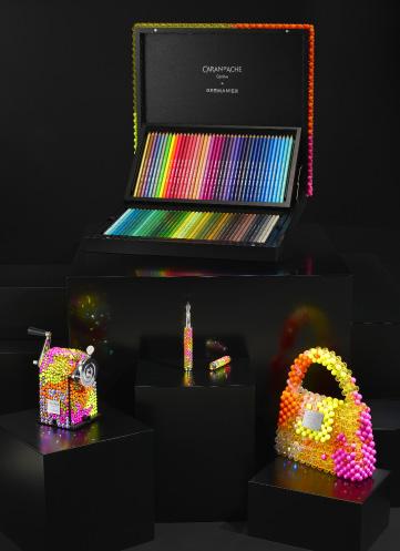 encore l’architecte Mario Botta. La collection «Les Fulgureuses» incarne la rencontre du design suisse et de l’esthétique couture. Une passion commune pour l’excellence et l’innovation a tout naturellement conduit à cette collaboration unique. Ce coffret unique de 120 crayons de couleur dans leur écrin est entièrement rhabillée de plus de 1500 perles tissées à la main d’une palette de couleurs Infra Rose. Seulement 3 coffrets de crayons de couleur ont été réalisées pour la collection «Les Fulgureuses», chacun unique par la palette de couleurs éclatantes de leurs coffrets.