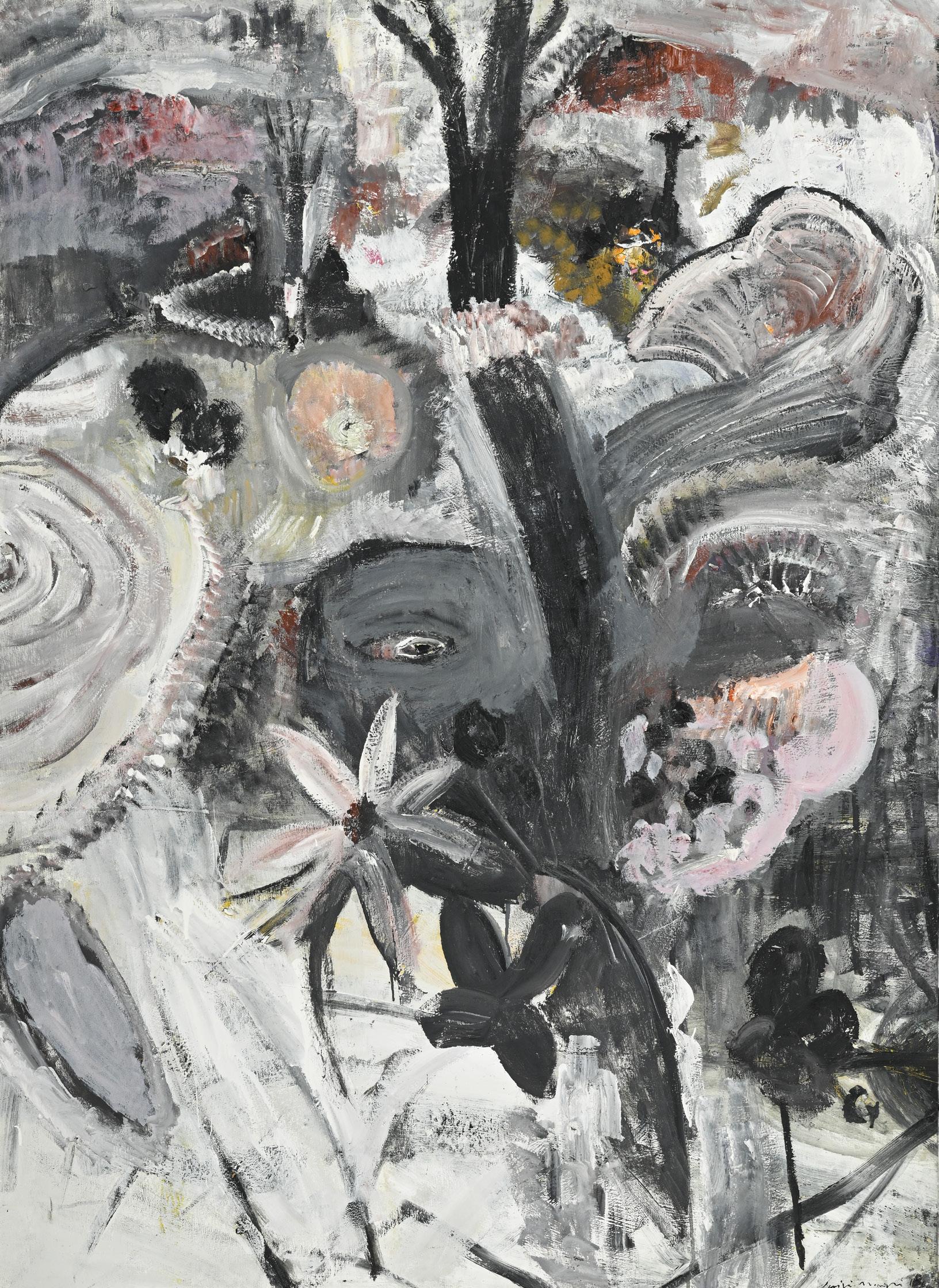 2193. Alois Mosbacher (1954), Composition, 1983, huile sur toile, monogrammée et datée, 100x70cm