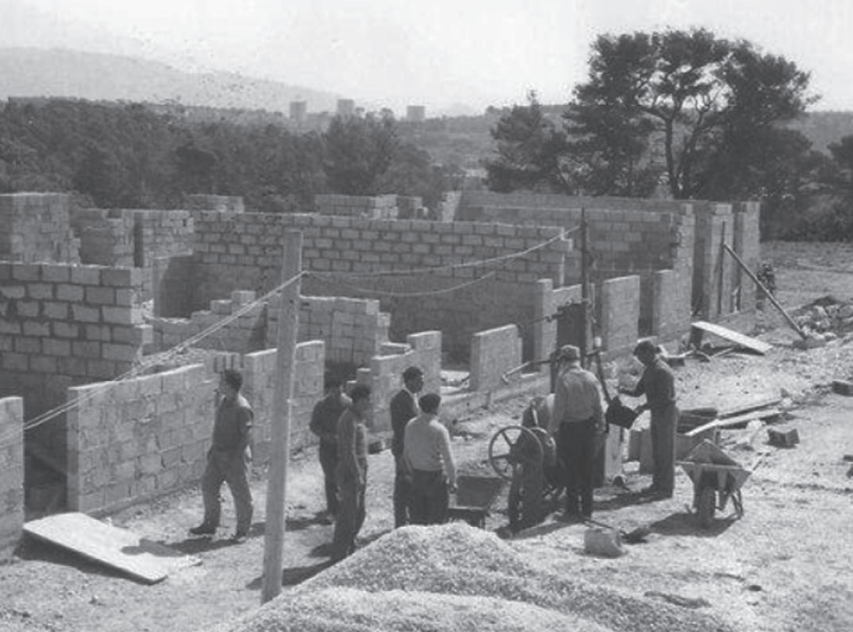 Puis ils se mettent tous au travail moyennant un nombre d’heures équivalent pour tous, une tâche attribuée selon les compétences, à hauteur d’une participation de quarante heures hebdomadaires par famille. Lorsqu’un lot de cinquante maisons est terminé, on tire au sort son logement et on l’occupe, tout en continuant à construire pour d’autres. Un système collectiviste qui, bien qu’assez contraignant, permettra à bien des ouvriers et petites classes moyennes d’accéder à la propriété d’une part, mais surtout de réaliser une utopie domestique, celle de la résorption du bidonville par l’organisation collective, et celle du modèle parfait de la famille que l’on qualifiera plus tard de « classe moyenne ».